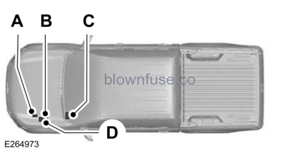 | A B C D Note: The passenger compartment fuse box is on the right-hand side for right-hand drive vehicles. |
