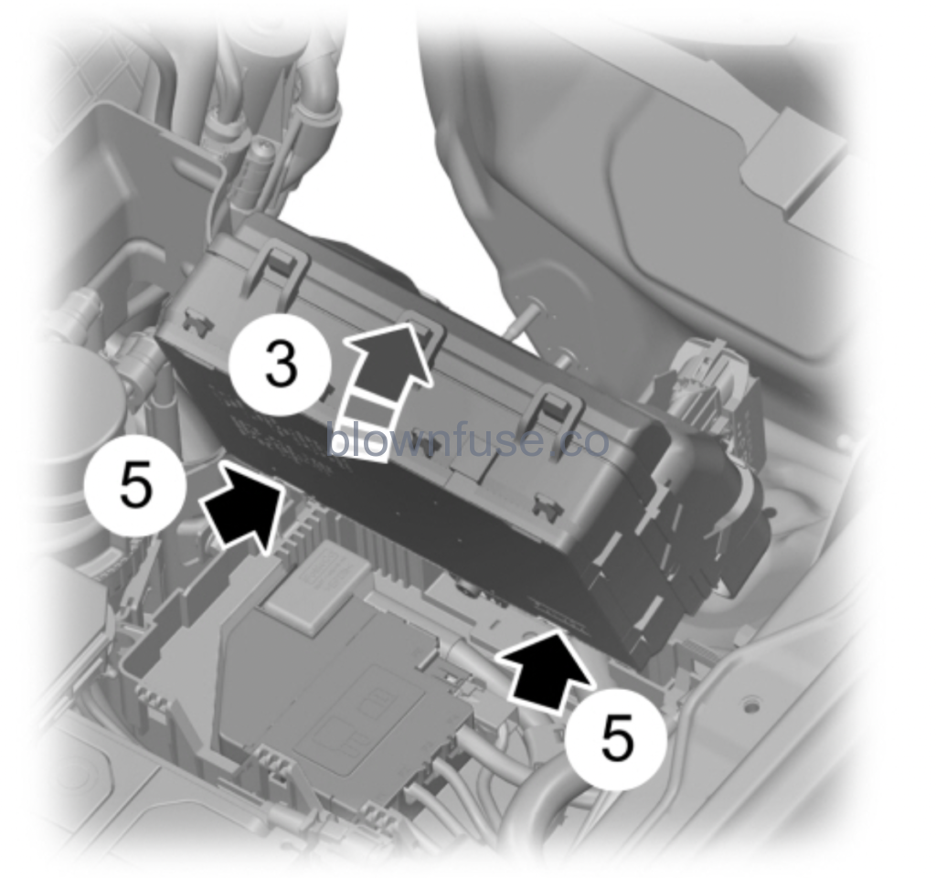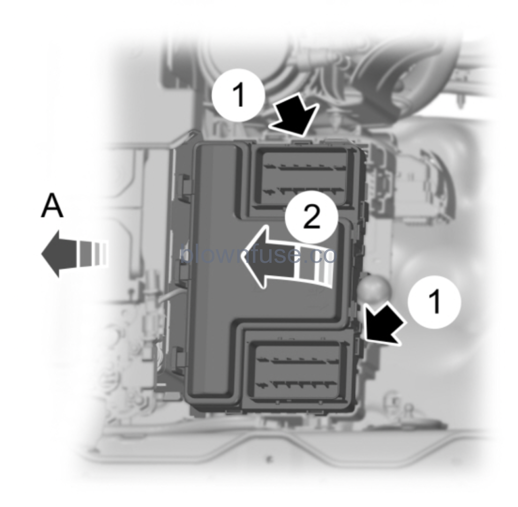 - Pivot the rear side of the fuse box to access the bottom side.